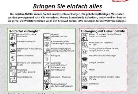 Ruck zuck entsorgen - keine Wartezeiten - keine Gebühren - genügend Parkplätze